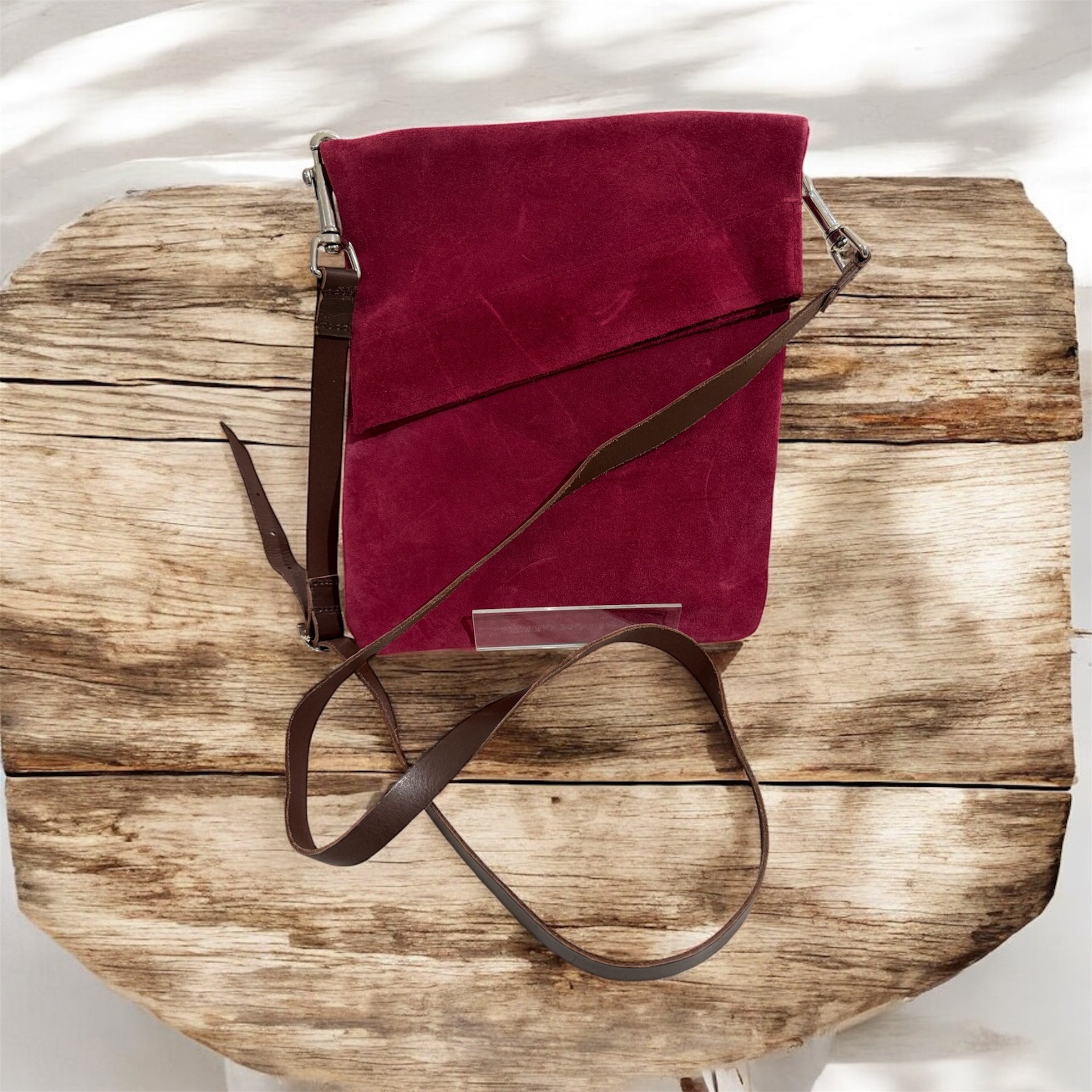 Deep Pink Suede Crossbody Handbag